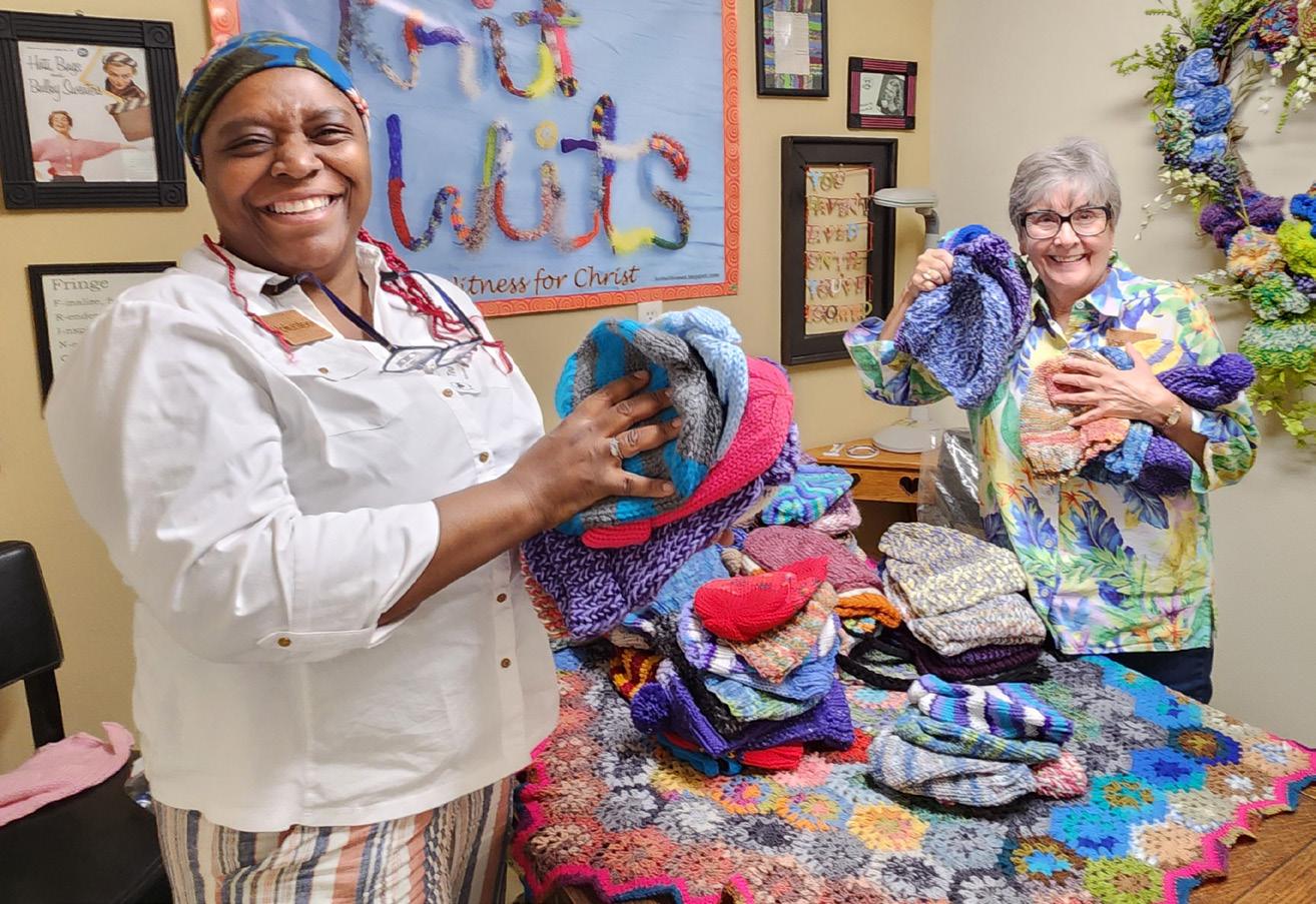 For The Lamb’s Loom, that means we get to go outside and enjoy our two Sit-n-Knit areas. The yarn fun never stops around here, so please know you are always welcome to join us out on Peggy’s Porch for a little Sit-n-Knit time and a cup of warm tea. It has been a blessed year, and we are finishing up strong. We are so happy to see all of the handmade items continue to come in for our Donation Chest. There are still a few of our mission groups in need of items for the cold nights here. We know it isn’t very cold for most of you, but when over 90°F is your norm, as these cooler nights approach, it can be hard in a home without heat or living out on the street. So, thank you for adding to the chest every day.