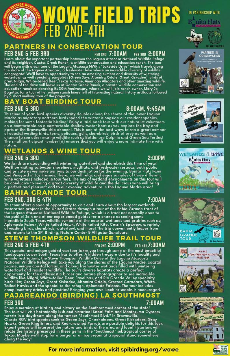 No, the headline is not a typographical error! It’s time for the Winter Outdoor Wildlife Expo or WOWE. This spectacular event is being held February 5 – 7 at the SPI Birding, Nature Center & Alligator Sanctuary on South Padre Island. There will be field trips, guest speakers, raptor and reptile shows, exhibitors, a photo contest, and a whole lot more.