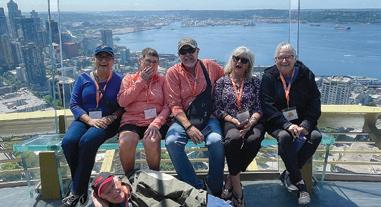 Our group had a great mix of down time to explore at their own pace, along with some scheduled group fun. We visited the Space Needle and enjoyed the gorgeous views from up top. There were some shenanigans up top, as well, including dancing, silly photos, and lots of laughs! The glass artwork in Chihuly Garden and Glass was incredible to see in person. A delicious, three-course dinner overlooking the sunset on the bay was the perfect way to end a wonderful day.