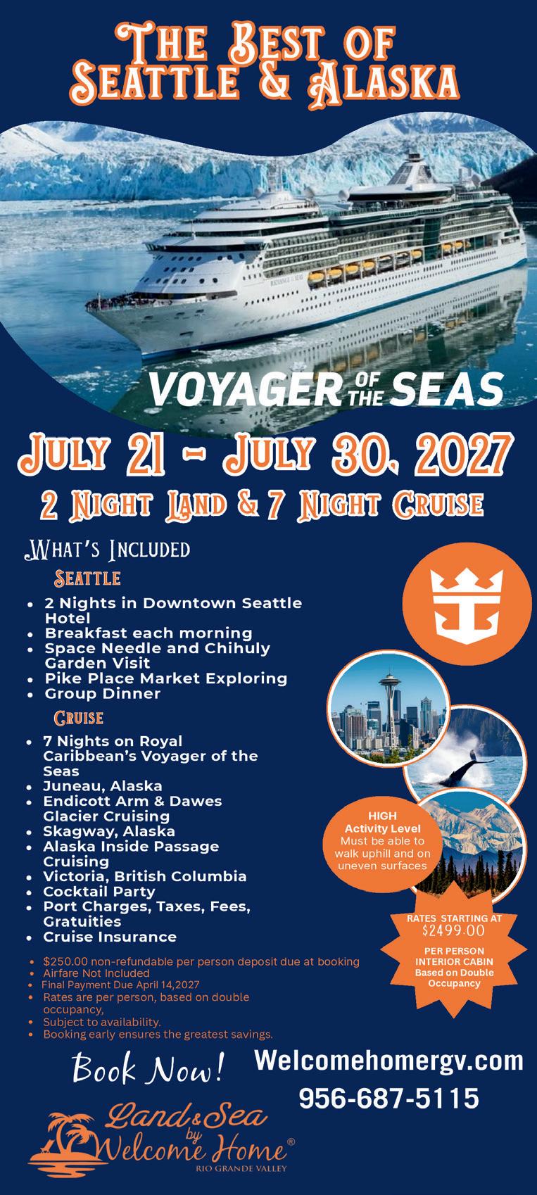 For more information on Alaska cruising and group cruising options, give us a call at 956-687-5115 and ask for Sarah and Travel Kristy. •