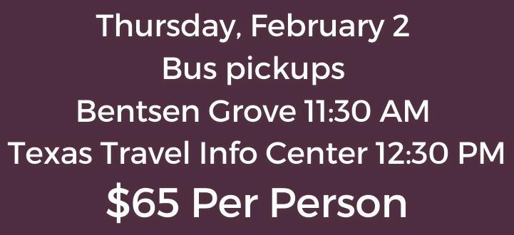 Winter Texan Orchestra 07:00 PM Tip O’ Texas, 101 E. Sioux Rd, Pharr. Donations. (956) 787-6461.