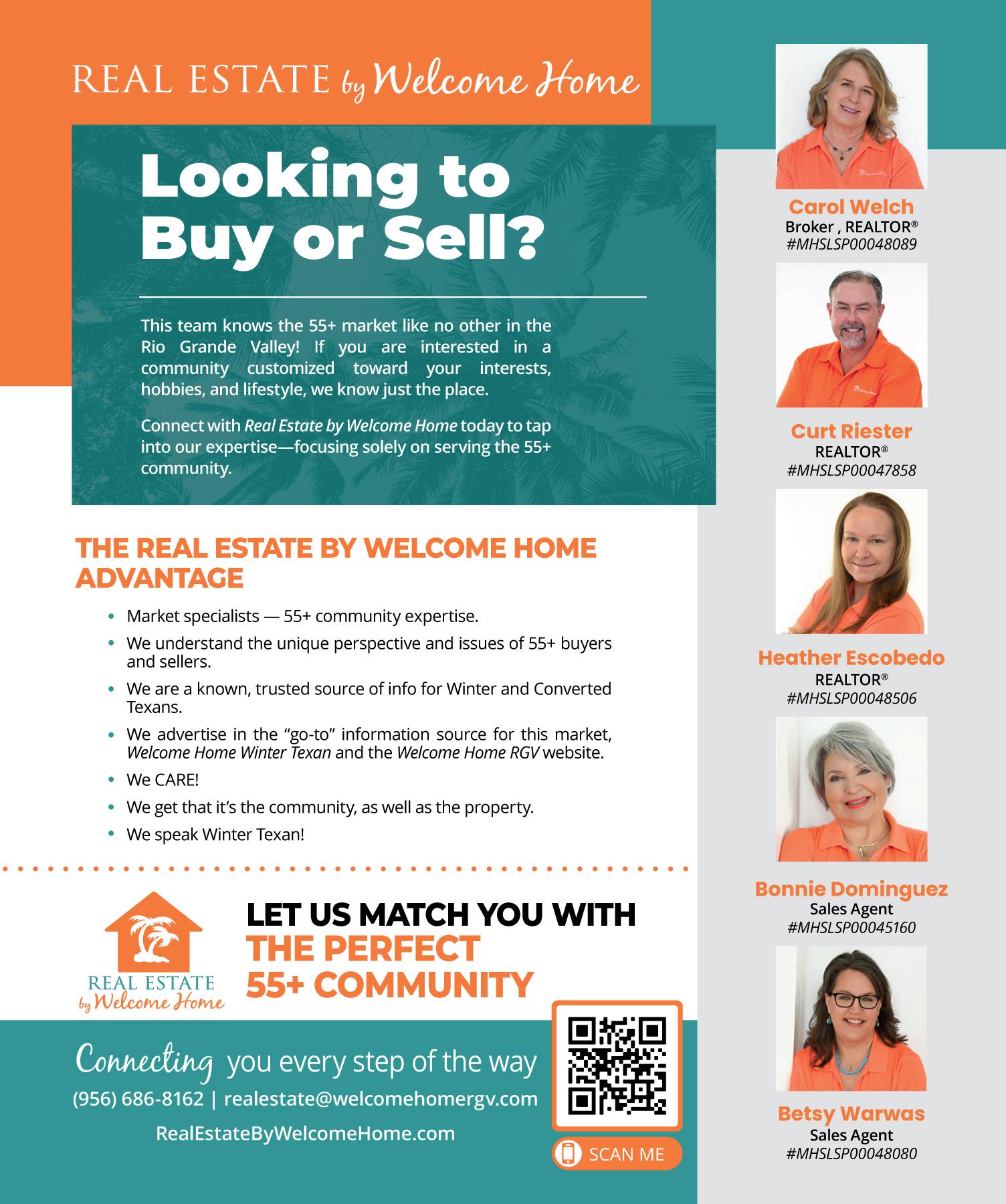 www.facebook.com @whrgv @wintertexan www.youtube.com Find on YouTube Channel “Welcome Home Rio Grande Valley” www.instagram.com @welcomehomergv @wintertexans www.twitter.com @welcomehomergv 219 W. Nolana • McAllen, TX 78504 956-687-5115 Check out our website! www.welcomehomergv.com • • • © Copyright 2022 Welcome Home, Rio Grande Valley, LLC. All rights reserved. No part of this publication may be reproduced or transmitted in any form or by any electronic means without written permission from Welcome Home, Rio Grande Valley, LLC.