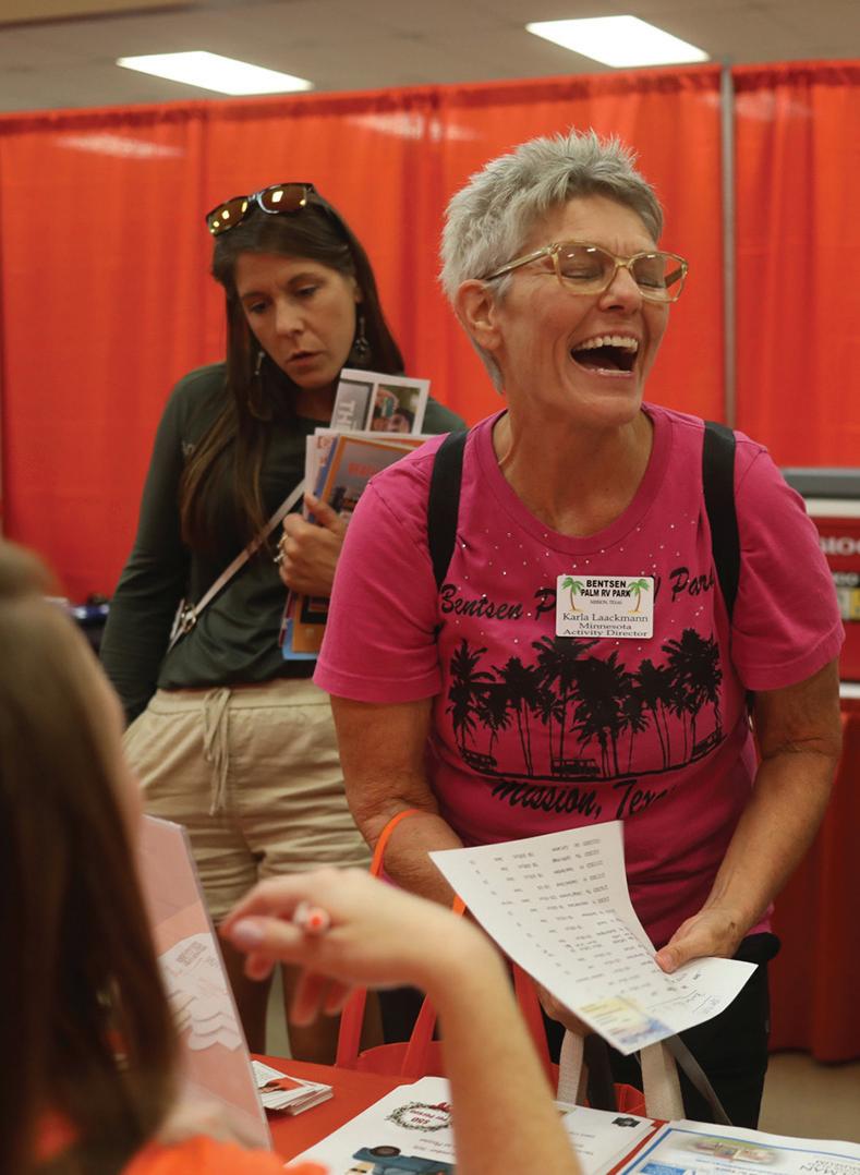 Activity directors like Susan Thomas of Bit-O-Heaven in Donna attend, ready to book speakers and schedule tours. She also collects promotional material, fliers, maps, and business cards. All the information gathered is organized and shared with park residents over the course of a season…and beyond.