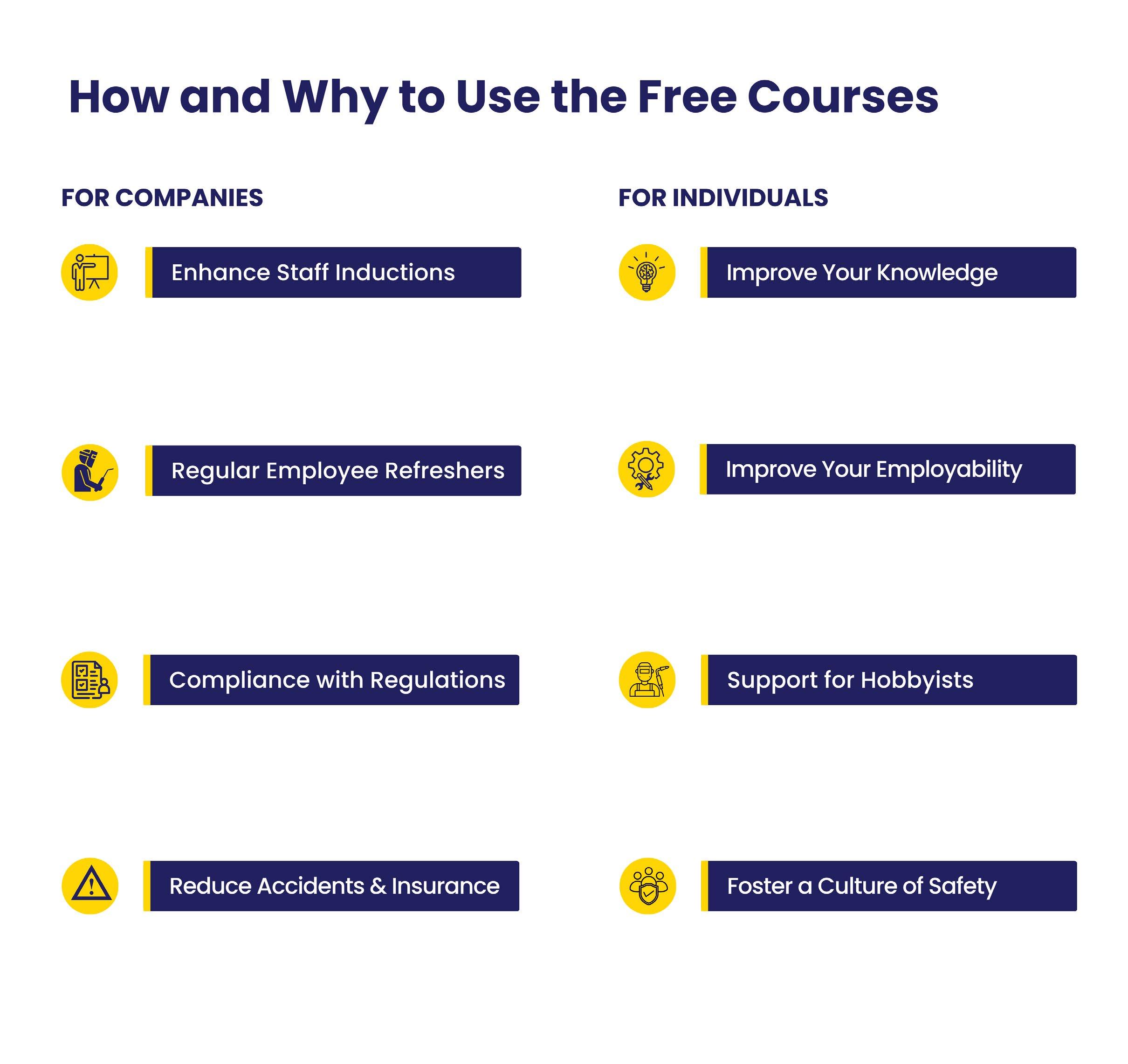 The courses can be used as part of an ongoing training program to keep employees up to date with the latest safety techniques. Regular refreshers help maintain safety awareness, reducing risk of accidents.