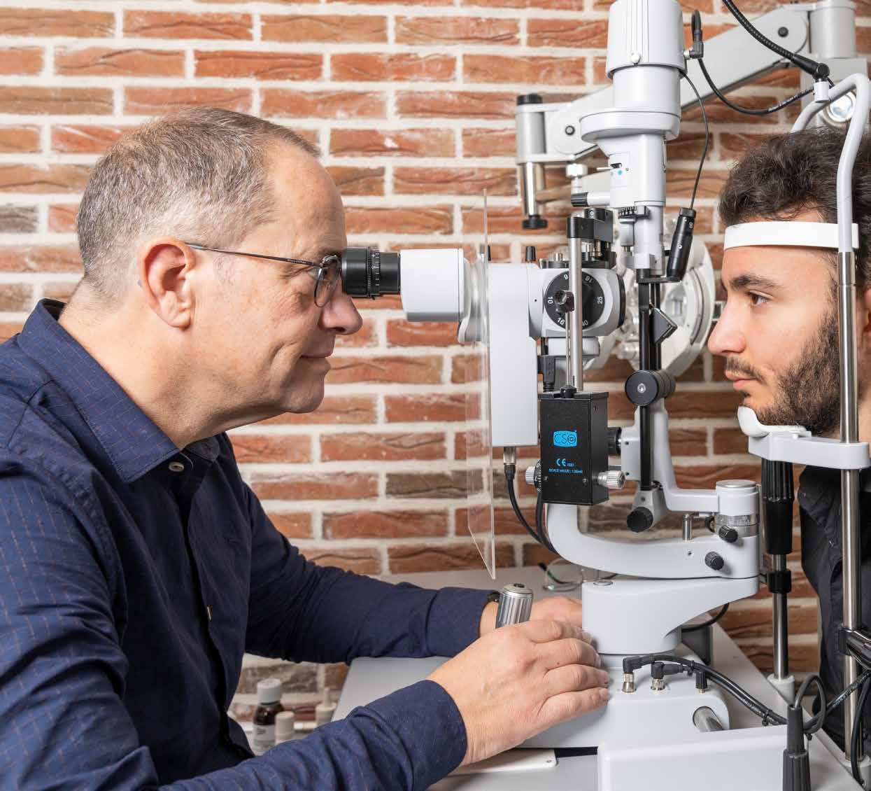 Rob wil het beste voor ieders ogen. In de jaren dat Rob aan het hoofd van de winkel staat is de expertise op gebied van oogzorg gegroeid. Hij breidt het team uit met meer specialisme; Sven is nu de tweede optometrist van de winkel. Een optometrist kan het grootste deel van de niet-ernstige oogaandoeningen beoordelen en behandelen. In 2021 is Miedema Oogzorg aangesloten bij de zorgorganisatie Ksyos. Hierbij kijkt een oogarts digitaal mee tijdens een controle. Zo omzeil je als klant de lange wachttijden van het ziekenhuis.