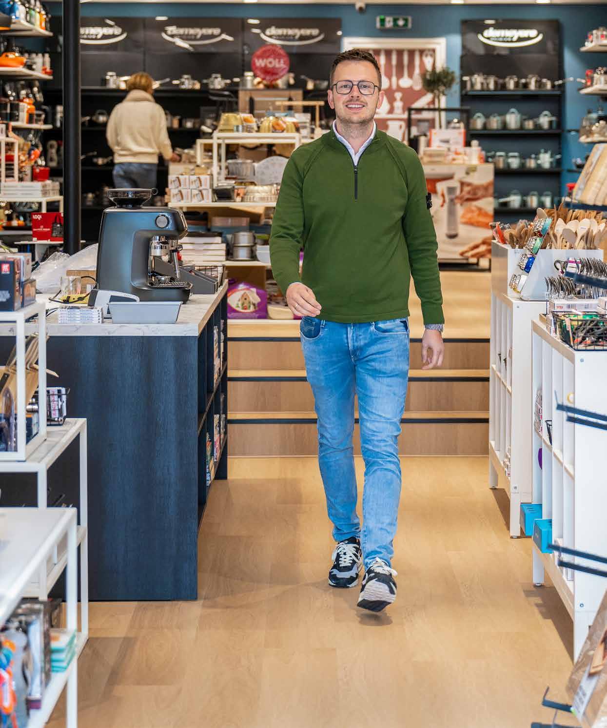 waar wij ook specialist in zijn. In veel kookwinkels vind je stapels spullen. Bij ons heb je overzicht en kun je rustig inspiratie opdoen. Dat vind ik als winkelier erg belangrijk.”
