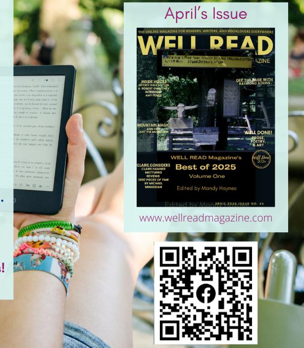 In the Best of 2024 Volume Two, you’ll find fifty-two submissions written by a fantastic mix of awardwinning authors and poets plus new ones to the scene. Three submissions in this volume were nominated for a Pushcart Prize: Hanging Pictures by Micah Ward, The Lone and Level Sands by James Wade, and American Chestnut by Candace Connor. The cover art is by artist, Lindsay Carraway, who had several pieces published in February of 2023.