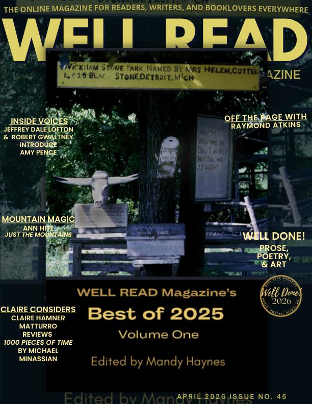 Mike Turner was named 2025 Poet of the Year by the Alabama State Poetry Society; featured performing his original songs at the 2020 Monroeville Literary Festival. He has more than 550 poems published in over 130 international journals/anthologies, including Well Read Magazine. Mike’s poetry collection, Visions and Memories, was published in 2021 by Sweetycat Press.