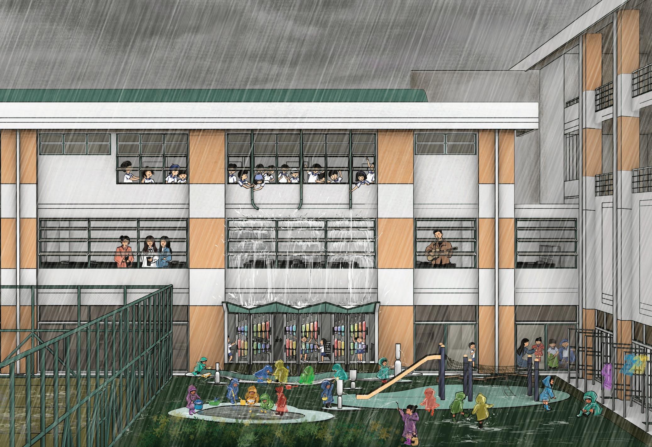 “Rain Rhapsody” tapped into kids’ fantasy with tropical rain to create a whole system of water-activated musical glass facade. In each step from rain harvesting to rain manipulation, kids would be engaged in learning through five senses. The result is a special external building skin that deals with climatic conditions including heat, glare and flood in a positive space that facilitates learning and can be used for various activities. During the design process, it is part of the journey to resolve conflicts in terms of quantitative and qualitative performance aspects, as well as document and evaluate experimentations through proof of concept.