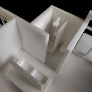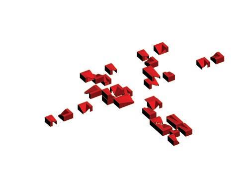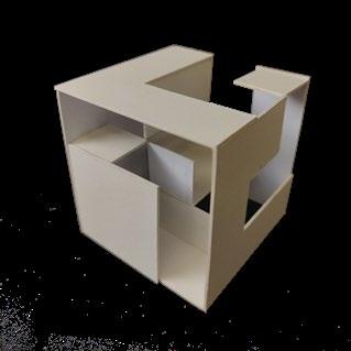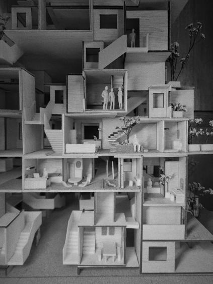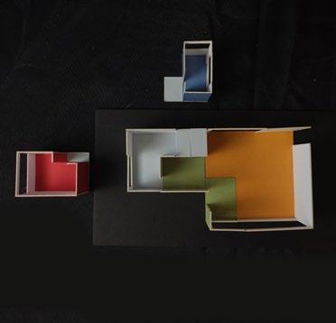Void in contrast. Is void a contrast of solid mass? Does void have different forms compared to mass? Void in planes. If three out of six faces form 3D, how many surfaces could define or enclose void? Is void a 2D or 3D presence? Void in progress. Can void grow or develop with time? Is there any connection between voids? Void in perspective. Could void change when viewed from varies perspectives or angles? Void in balance. If void must be contrasted with mass, is there any ratio or percentage to determine the hierarchy? Void in natural corrosion. Where is the usable space, in the holes or the mass? Void in bubbles. Could voids shape the void space and become the “cause” rather than the “result”? Void in grids. Will void be affected by materials to express different qualities and languages? Void in infinity. Does void exist in the inside or outside? Must voids have definite boundaries? X --- Open Space Kitchen & Dining Area Bathroom & Toilet Bedroom Study Room Construction Area: 54.54 sqm Construction Area: 55.195 sqm Cell Type 1 Cell Type 2 Cell Type Void as a turning point --- Change Void as a pivot point --- Balance e “cell” as the creative containment of life. ere are two layers of void de ned --- connection with the exterior (nature and people), and the spacial people spend di erent amount of time for each activity and they tend to invest more in wherever they stay for the longest. us, each cell type uses volumes routine. All three cell types have open or semi-open spaces to engage with the outside environment. 2.5 m 3.0 m Void Void Inspired by 四合院 for the central courtyard, but with reduced hierarchy among four other spaces to describe a highly routinary and cient life. Long and open lower oor is a strong contrast to the minimalistic upper oor. is cell type features clear segregation between personal and shared spaces. Vertical arrangement lights the hierarchy Meeting room is spacious and and lighting. enclosed and private. X --- Open Space Kitchen & Dining Area Bathroom & Toilet Bedroom Study Room Construction Area: 54.54 sqm Construction Area: 55.195 sqm Cell Type 1 Cell Type 2 Cell Type Void as a turning point --- Change Void as a pivot point --- Balance e “cell” as the creative containment of life. ere are two layers of void de ned --- connection with the exterior (nature and people), and the spacial people spend di erent amount of time for each activity and they tend to invest more in wherever they stay for the longest. us, each cell type uses volumes routine. All three cell types have open or semi-open spaces to engage with the outside environment. 0 5 10 m SCALE BAR 1:100 3.0 m Void Void Inspired by 四合院 for the central courtyard, but with reduced hierarchy among four other spaces to describe a highly routinary and Long and open lower oor is a strong contrast to the minimalistic upper oor. is cell type features clear segregation between personal and shared spaces. Vertical arrangement lights the hierarchy Meeting room is spacious and and lighting. enclosed and private. AGGREGATION POSSIBILITIES ERGONOMIC STUDY Cell 2 Cluster A = Cell 2 + Cell 1 Cluster B = Cell 1 + Cell 3 Mirrored Cell 3 Cluster C = Cluster A + Cluster B Cluster D = Cell 2 + Rotated Cell 1 + Mirrored Cell 3