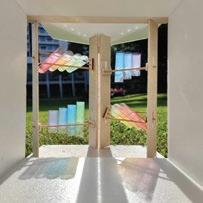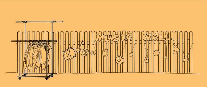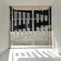 Rain Rhapsody 75mm Top Pivot Bottom Pivot Hinge Optional Bracket Track Hanger e musical glass facade features a bifold door mechanism that allows the glass cups to be toppled in a row, enabling the quick and easy disposal of water. When the facade is folded, the cups are pushed outwards to prevent the stage and the interior corridor from getting wet. Conversely, when the facade is attened, the 500 mm wide seat can be folded up to provide seating for children both inside and outside, enabling them to interact and play with the musical glass cups.