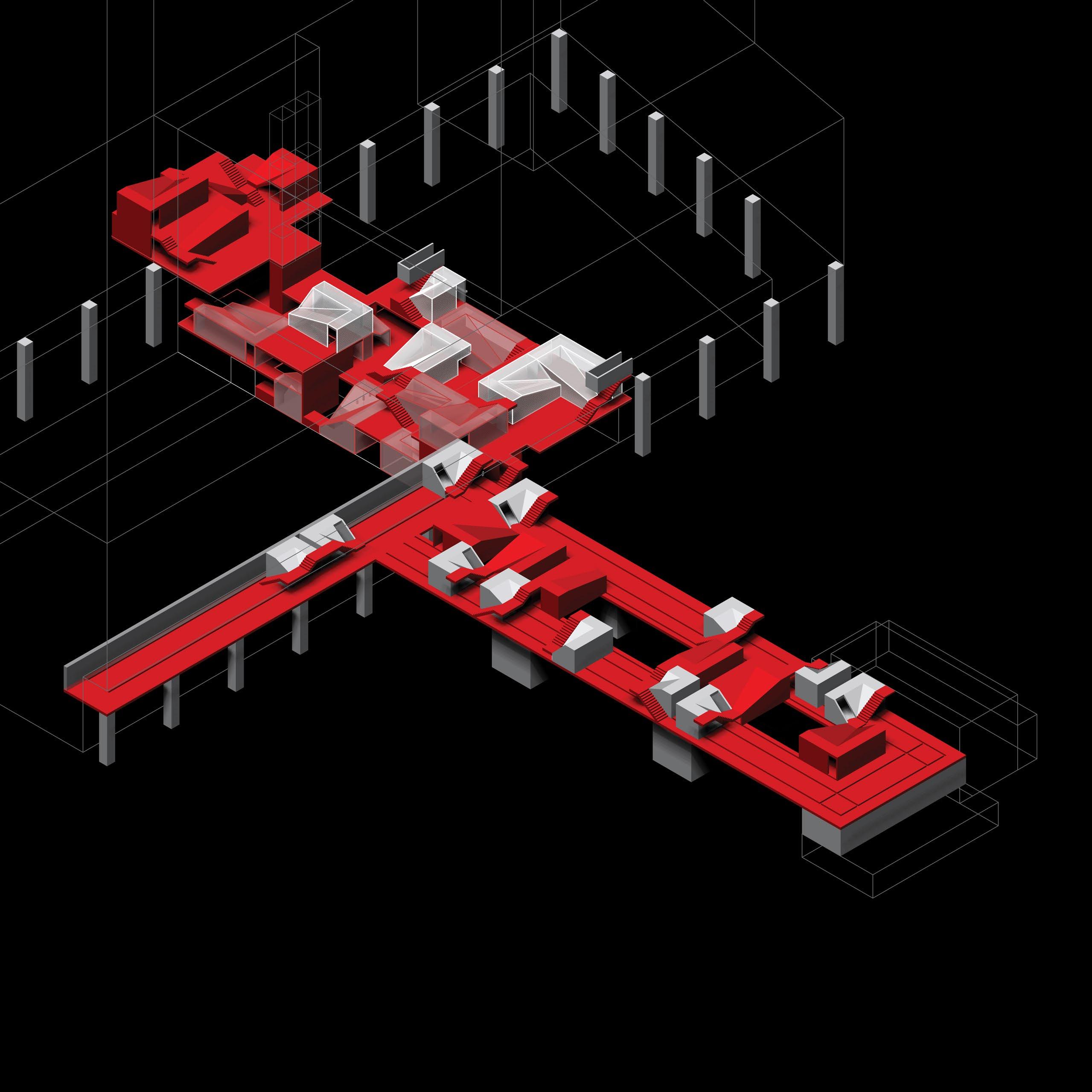 TIME TRANSFORMER DESIGN 5 | UNIT 1 | STUIDIO FR | WANG TIANYUN OUT SOFITEL HOTEL DROP-OFF OFFICE LOBBY DROP-OFF OUT Moving Mode Insu cient pedestrian access to the car park and tness center necessitates an upgraded overhead bridge, known as the "Transitory System." is enhanced bridge seamlessly connects various programs, featuring side-lane modular units with staircases that align with central-lane modules. dynamic cycle within the system ers exibility for erent con gurations. is innovative solution resolves crossing challenges and enhances overall space functionality. PROJECT OVERVIEW e "Time Transformer" project envisions a modernist lifestyle in the heart of Tanjong Pagar, a bustling urban center characterized by high-rise o ce towers and a fast-paced environment. It aims to provide a sanctuary for working individuals, particularly o ce laborers, to escape the con nes of towering buildings and nd respite in a curated modular space. is space o ers relaxation and rejuvenation for the body, mind, and soul. Located beneath Guoco Tower and extending across Wallich Street to connect with an underutilized tness center within a car park, the project repurposes neglected passageways into valuable in-between spaces. ese spaces cater to the needs of lower-middle-class individuals who o en have short breaks, ranging from 5 minutes to 1 hour, amidst their busy routines. e project's goal is to o er intangible bene ts to both society and individuals, such as happiness, knowledge, or the opportunity to make new friends. It strives to provide solace within the bustling urban landscape and create a sense of belonging through simple and short activities aligned with individuals' genuine interests. As the name suggests, "Time Transformer" aims to revolutionize the monotonous lives of o ce workers by introducing modular spaces and programs that can adapt and change dynamically based on events and needs. While the initially box-like passageway may seem limiting, it provides a unique opportunity for structural support to design modular units that move along tracks in an organized grid layout. By breaking down the vast empty space into individual rooms, a cozy ambiance is curated, and the ceiling is transformed into an integral part of the design. Rather than randomly shaping forms, this design features a distinctive sloped walkable roo op that caters to two contrasting ways of spending time: leisurely and relaxed versus targeted and purposeful. rough creative integration of circulation and program, the "Time Transformer" project not only optimizes underused space but also elevates the system to propose a new way of life that embraces change and innovation. STATIONARY SYSTEM SCALE 1:500 Fixed LEVEL 2, 3 Transformable Default Mode Activity rooms are independent and scattered. Lounge Mode Creative rooms are grouped and linked to form bigger double volume space, suitable for gallery A central square is conducive for gathering. A movie night becomes possible. Performance Mode Rooms are pushed further to form an even larger stage facing the street for open concert or art perforPeople can enjoy the performance by sitting on level roo op or DESIGN STRATEGIES 1. Site Condition and Building Typology: - Consistent site conditions and building typology are maintained, focusing on areas within the "podium" and passageways/linkages. Emphasis on similar design components, integrating stationary/ xed systems and transitory/movable systems. 2. Design Components: - Integration of stationary/ xed systems and transitory/movable systems is a key design approach. - Ensuring these components harmonize with existing tra c patterns, predominantly pedestrian, optimizing and enhancing available space. 3.Tra c Integration and Optimization: - Integration and optimization of existing pedestrian tra c patterns. - Ensuring the coexistence of new modular spaces with the functionality of existing programs. 4. Conceptual Consistency: - A consistent conceptual approach is applied to create free and non-commercialized common spaces. Focused on providing overlooked low-middle working-class individuals with a sense of belonging in the city center, addressing their micro-resting time needs. 5. Community-Centric Design: Prioritizing the creation of spaces that cater to the needs of the community, particularly the low-middle working class. - Ensuring that the design facilitates a sense of belonging and community engagement. 6. Micro-Resting Time Focus: - Designing with a speci c focus on addressing the micro-resting time of the target demographic. - Creating spaces that allow for relaxation and a break from the bustling urban environment. ese strategies collectively aim to foster inclusivity, optimize space utilization, and enhance the overall urban experience for the designated user group. “ ere is an alternative: the unfashionable but powerful notion of letting time use you, approaching life not as an opportunity to implement your predetermined plans for success but as a matter of responding to the needs of your place and your moment in history. Oliver Burkeman, Four ousand Weeks: e Time Management for Mortals, 2021 STATIONARY SYSTEM TRANSITORY SYSTEM STATIONARY SYSTEM STATIONARY SYSTEM TRANSITORY SYSTEM TRANSITORY SYSTEM