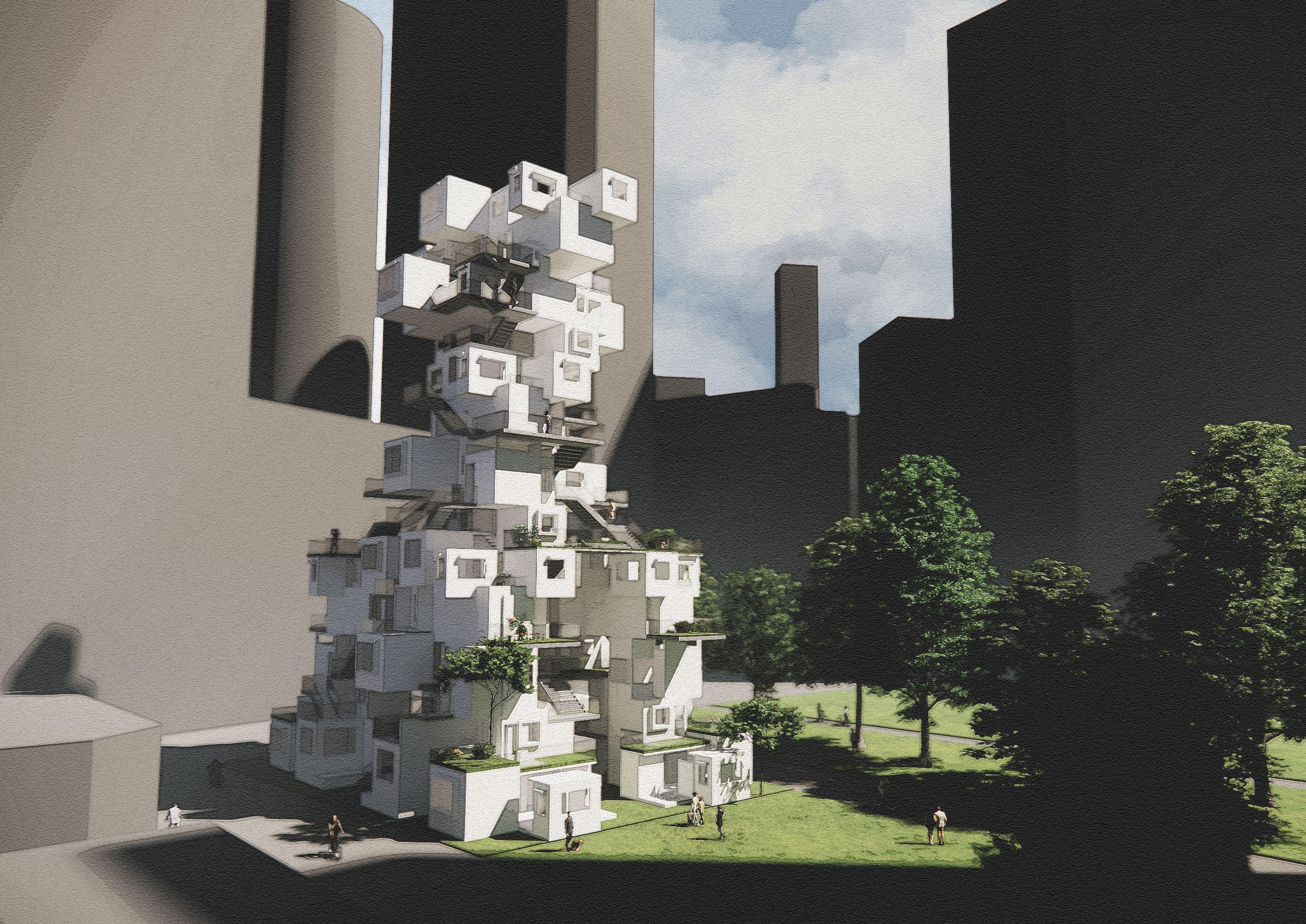 理论上,这些模块独立完整的结构可以使它们任意组合以适应任何场地条件。但本项目仅以三种情境为 例(综合区、住宅和商业街),在尊重场地限制和现有基础设施的情况下,展现“移行时空”的潜力和可塑 性。总体而言,该项目充满思辨,是存在于城市接口与缝隙中的设计,是一种诉求和希望,希望对既定的固 化的社会结构产生一点积极的影响,一点就好。