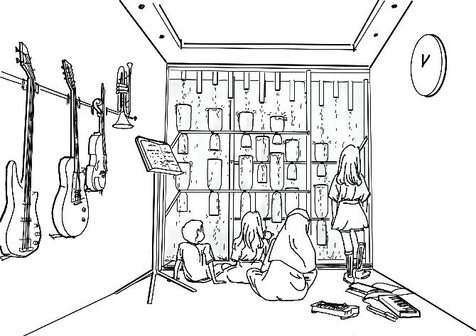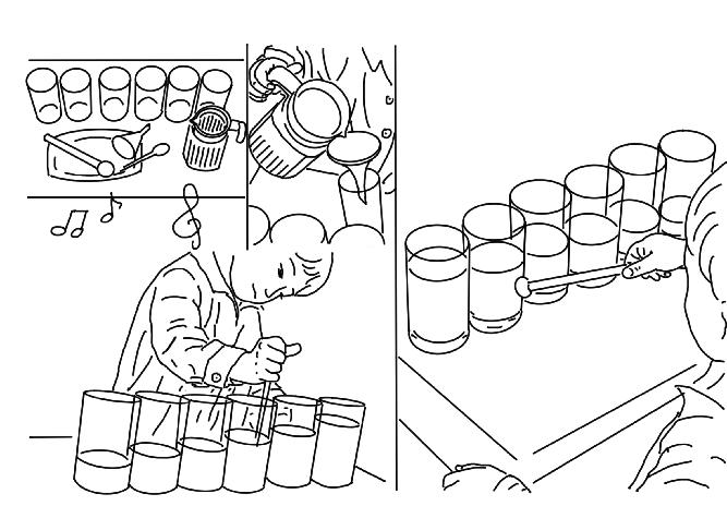 Tap Closed Tap Open On non-rainy days, children can add water to the glass cups and use turn the tap to adjust the water level so as to obtain desirable tunes. A glass cup lled with water denotes its lowest note. When water drains slowly, the glass cup is tuned to a higher note.