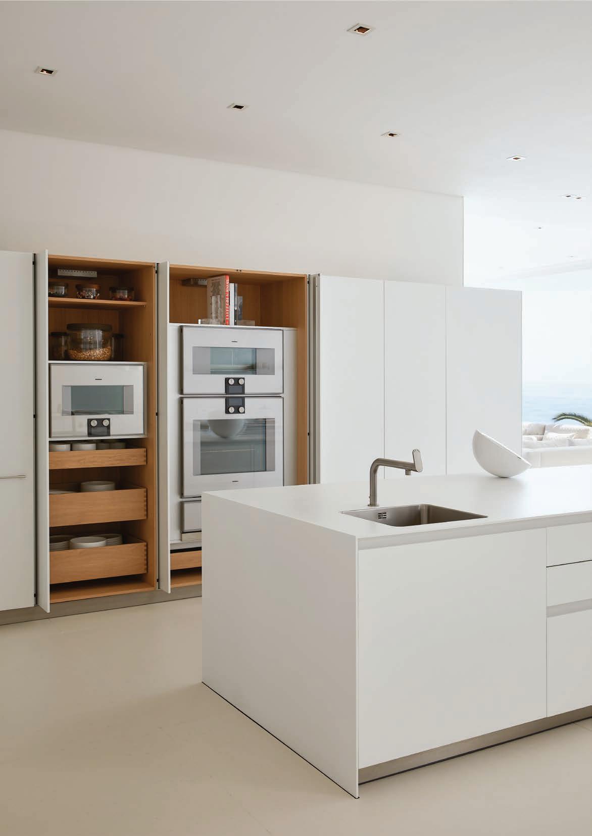 Solid lengths of wood are hand-picked and arranged by experts for the 12cmhigh oak top layer. However you choose to use your bulthaup b Solitaire, the wood becomes your platform.
