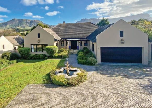 This exquisite home, positioned in the much sought-after Fransche Hoek Estate, offers an idyllic way of life. This is where nature, the mountains and a village lifestyle, blend seamlessly. T onto a sunroom with undercover braai and on to the pool and stunning large lawned garden, with breath-taking vistas of the mountains. Gary de Valle: 082 464 8038; Bev Malan: 082 901 6966; Moira Barham: 082 896 3597; Office: 021 876 8480; Web Ref: SIR106967.