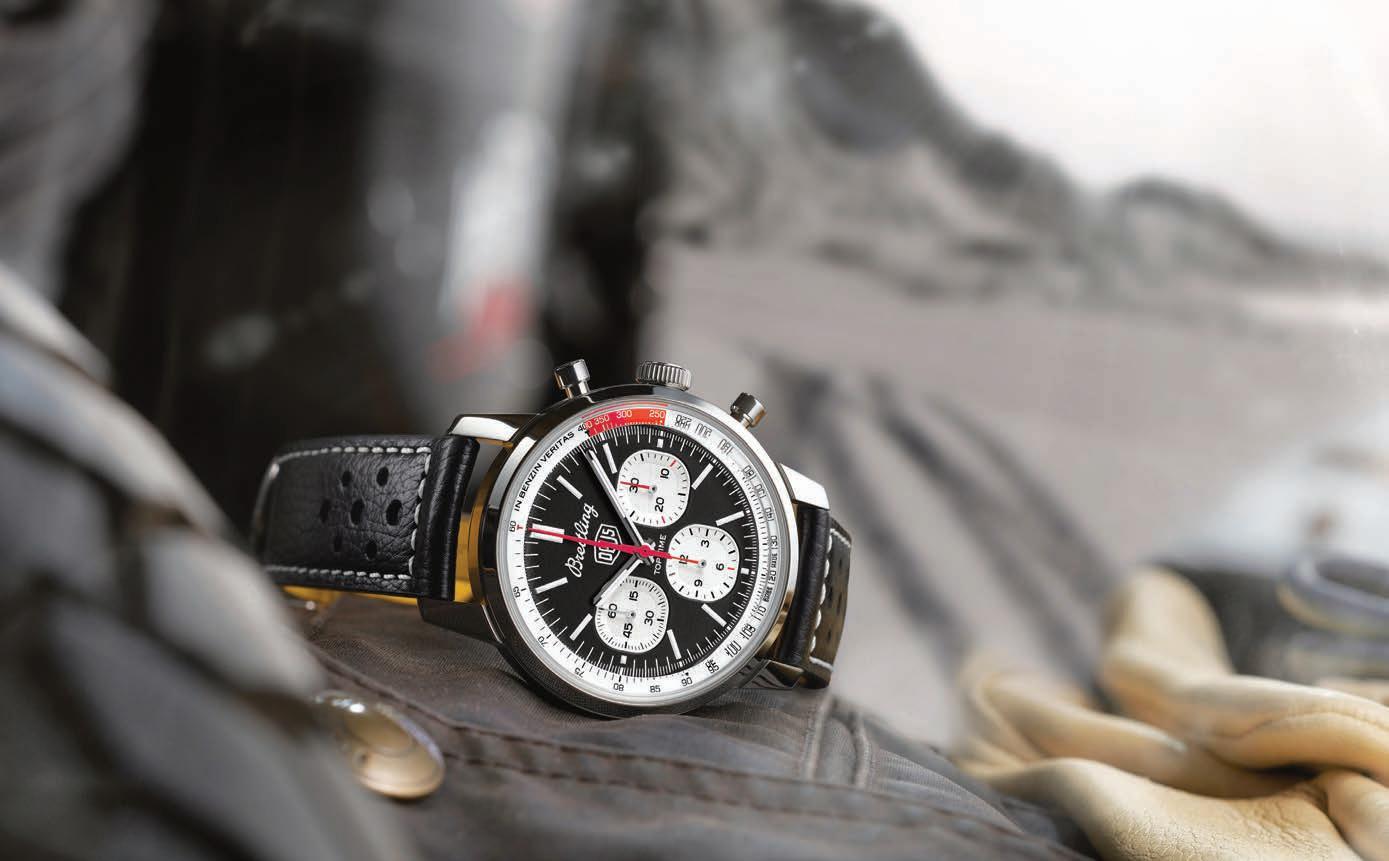 Collaborations are all the rage in watch-making circles and few are doing it better than Breitling. Successful associations with iconic car models – Mustang, Corvette, Triumph and Thunderbird – and adventurers have helped cement the Swiss brand as the go-to cool horologists. Enter the X Deus to underline that reputation. Co-designed with Australian surf-andmotorcycle outfitter Deus Ex Machina, Breitling’s handsome Top Time chronograph bears the words In benzin veritas (‘In petrol we trust’) on the dial. It also features a retro-inspired perforated leather racing strap, speed-measuring tachymeter scale and contrasting squircle subdials that give the feel of a vintage dashboard gauge. There’s also a special lightningbolt-shaped chronograph hand and, under the hood, a brag-worthy motor: the exceptional Breitling Manufacture Caliber 01. breitling.com