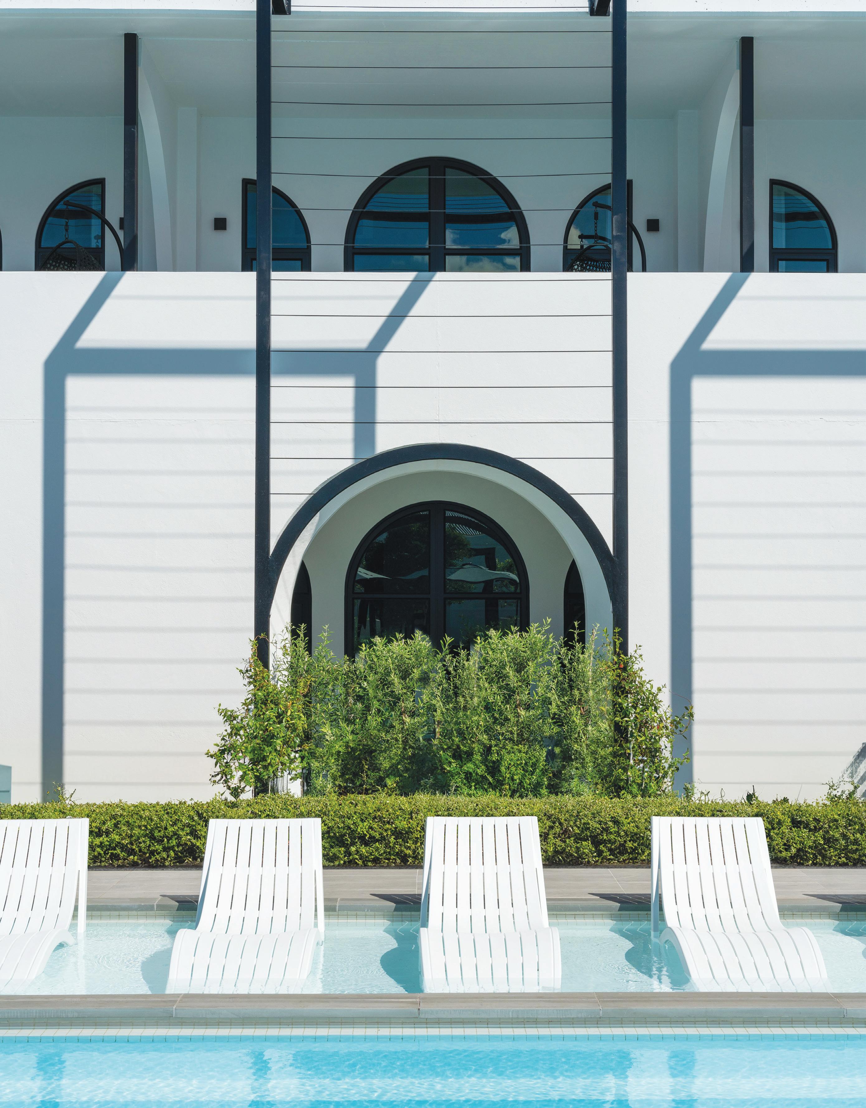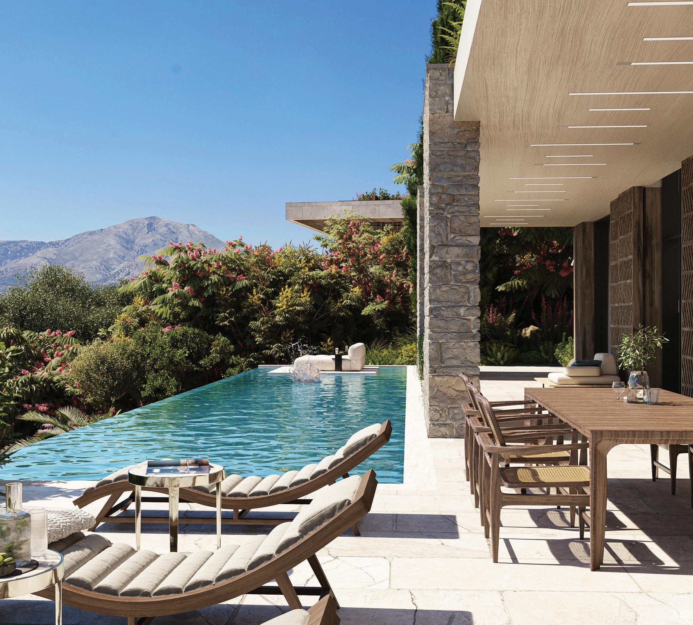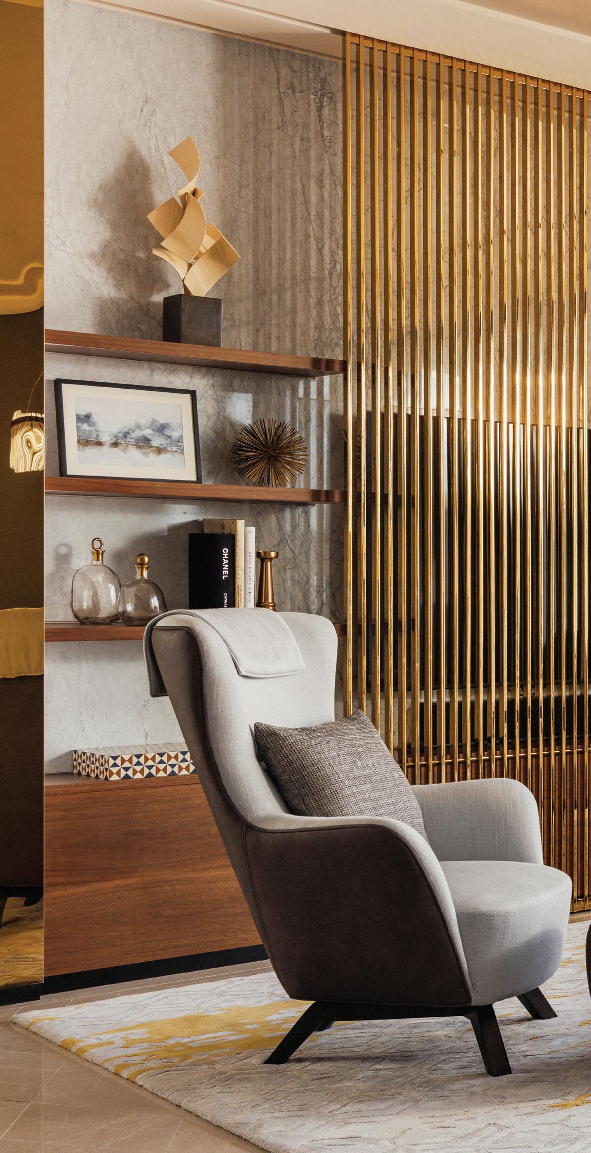 Longevity Bar and the first Longevity Index lounge in the region, allowing for ultrapersonalised protocols. Contextually led architecture and interiors draw on the hotel’s location while alluding to the wider desert setting in a contemporary design that celebrates the landscape (both natural and urban). Its entrance – an organic roof resembling undulating desert dunes – and tranquil interiors feature a serene combination of biscuit tones and cool blues, with local motifs in the form of geometric patterns interwoven throughout. oneandonlyresorts.com