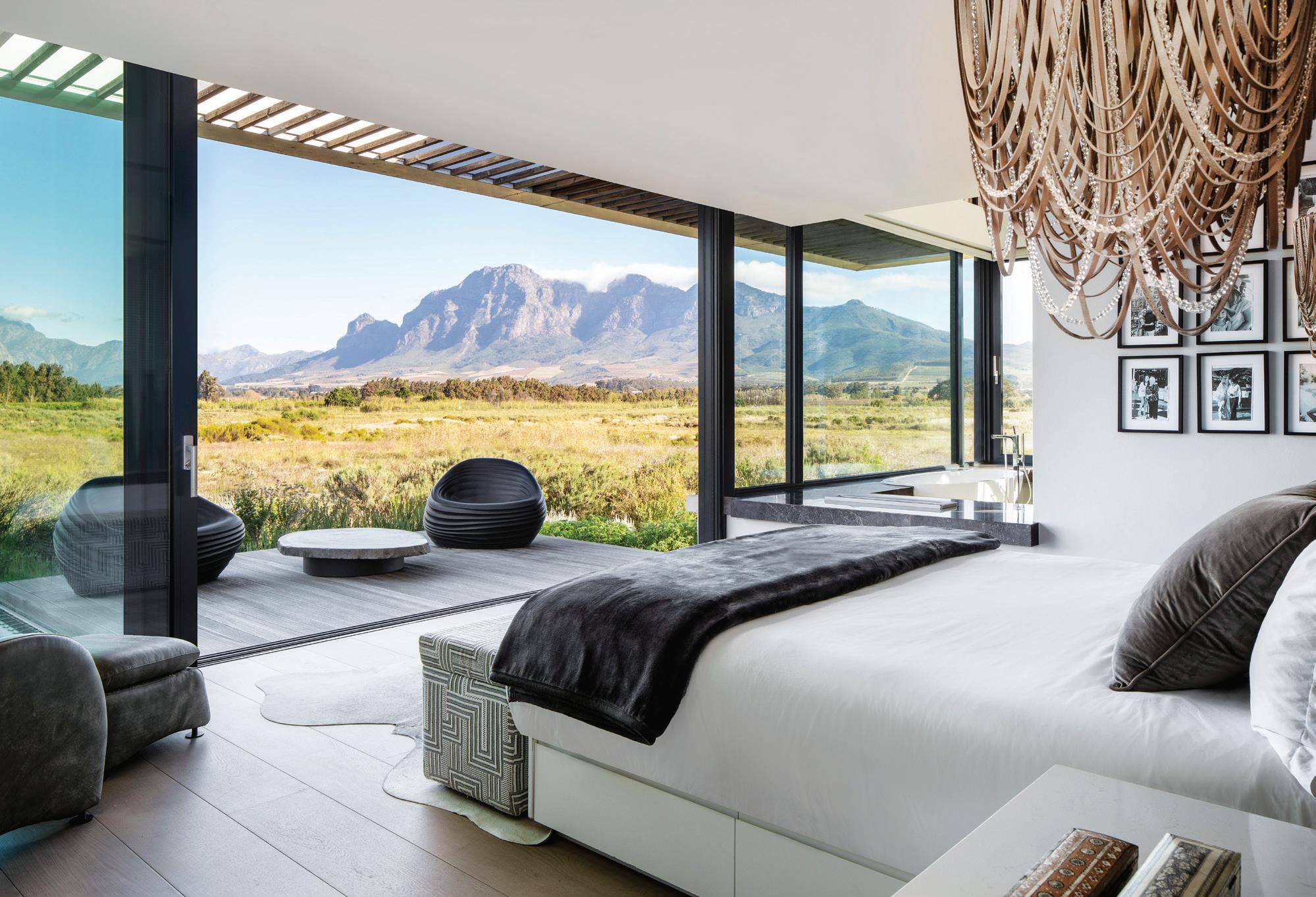 to enjoy sea and mountain views from my home, living up close and personal with nature comes with its own set of challenges. I’ve stumbled across more scorpions and snakes in my garden and house than I’d really ever want to, including a baby Cape cobra that reared its head when I went to inspect what was coiled up on my living-room rug. I’ve had eagles swoop across my property looking for prey (my dogs are thankfully adept at hiding), and I was once visited by a lost (but confident) male baboon. And why the guinea fowl have to land on my bedroom roof before sunrise with their enthusiastic chatter, only the guinea fowl know.