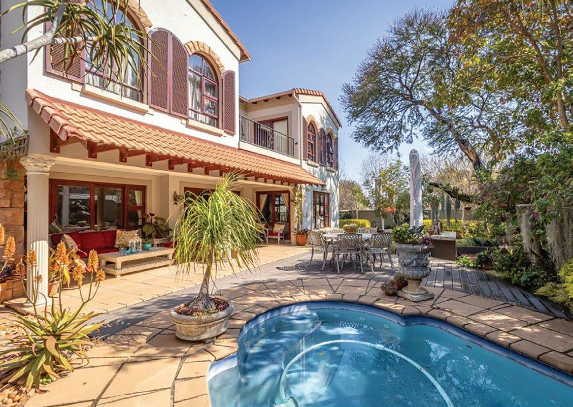 Private in a complex of 3, excellent position.Double-volume entrance, beautiful flow of receptions. Living rooms lead onto undercover outdoor entertainment. Superb formal lounge and dining room with atrium, Bright and Airy family/ TV room, Renovated Island kitchen and breakfast room, separate scullery, and laundry. Guest bedroom downstairs. 4 Glorious bedrooms upstairs, MES with lavish walk-in dressing room. Study. Heated pool set in a beautiful, lowmaintenance garden. North facing, state-of-the-art security, 4 garages, offstreet parking. Low levies. Sabina: 083 254 6981; Kobus: 083 632 2626; Web Ref: 6393608.