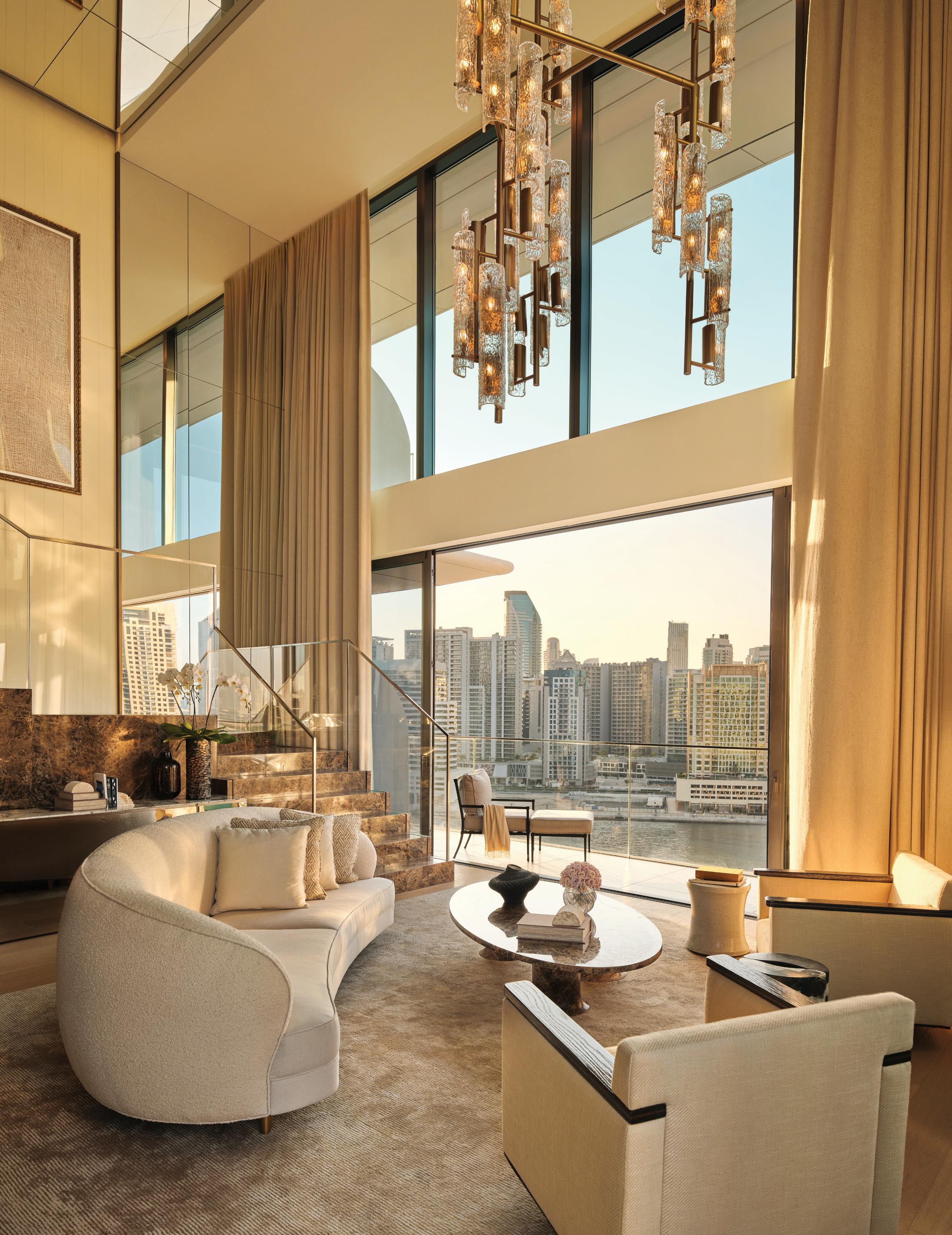 The newest addition to the Dorchester Collection, The Lana, brings an English gentility and French polish to Dubai’s Business Bay. The elegant Foster + Partners-designed hotel on the edge of the Marasi Bay Marina – a prime location with easy access to Downtown Dubai, D3 (Dubai Design District), the Dubai International Financial Centre and the Burj Khalifa – spans 31 floors and takes inspiration from Dubai’s evolving skyline.