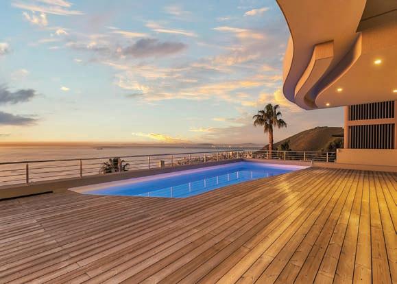 An opulent home offering multiple indoor and outdoor entertaining areas together with two kitchens, as well as an elegant bar allows for flexibility in how the space can be used, whether for accommodating large gatherings or maintaining separate living quarters. Sliding glass doors lead out to an exquisite terrace with breathtakingly beautiful sea views. Two swimming pools enjoy Lion’s Head views as well as a direct access gate to the beachfront. There are eight bedrooms. The lavish main bedroom suite and study boasts a wraparound balcony with astounding views. Perfect for the car enthusiast with parking for seven vehicles. Andrea Glew: 079 893 9197; Web Ref: SIR107469.