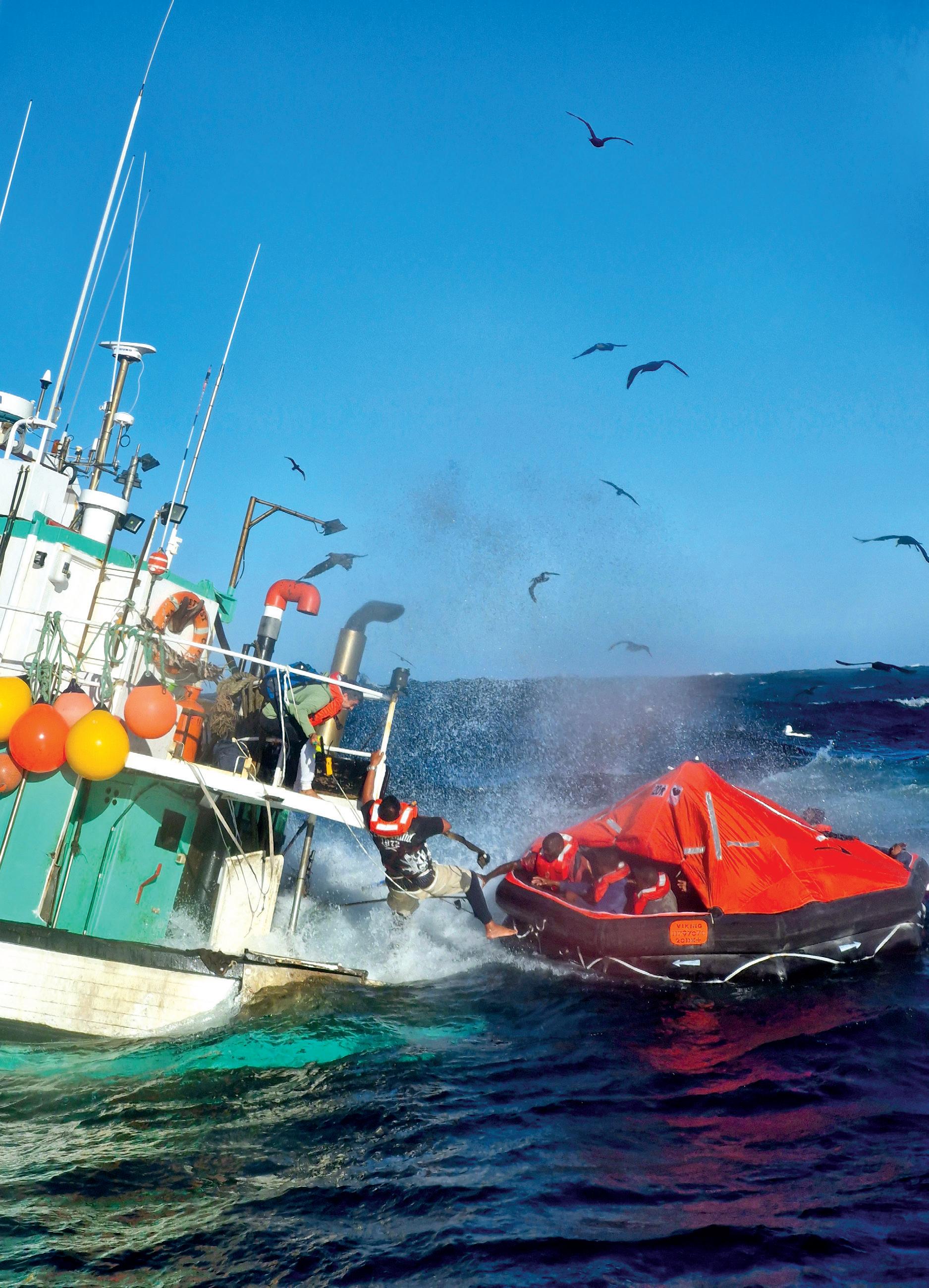 ‘We started the trip running 18 knots, then dropped to 15 and, finally, 8 knots. These three-to-four-metre swells running north at about 20 knots were hitting us on our port side. The wind picked up to 30 knots, and sometimes the swells would join together, start to break at the top and smash into us.