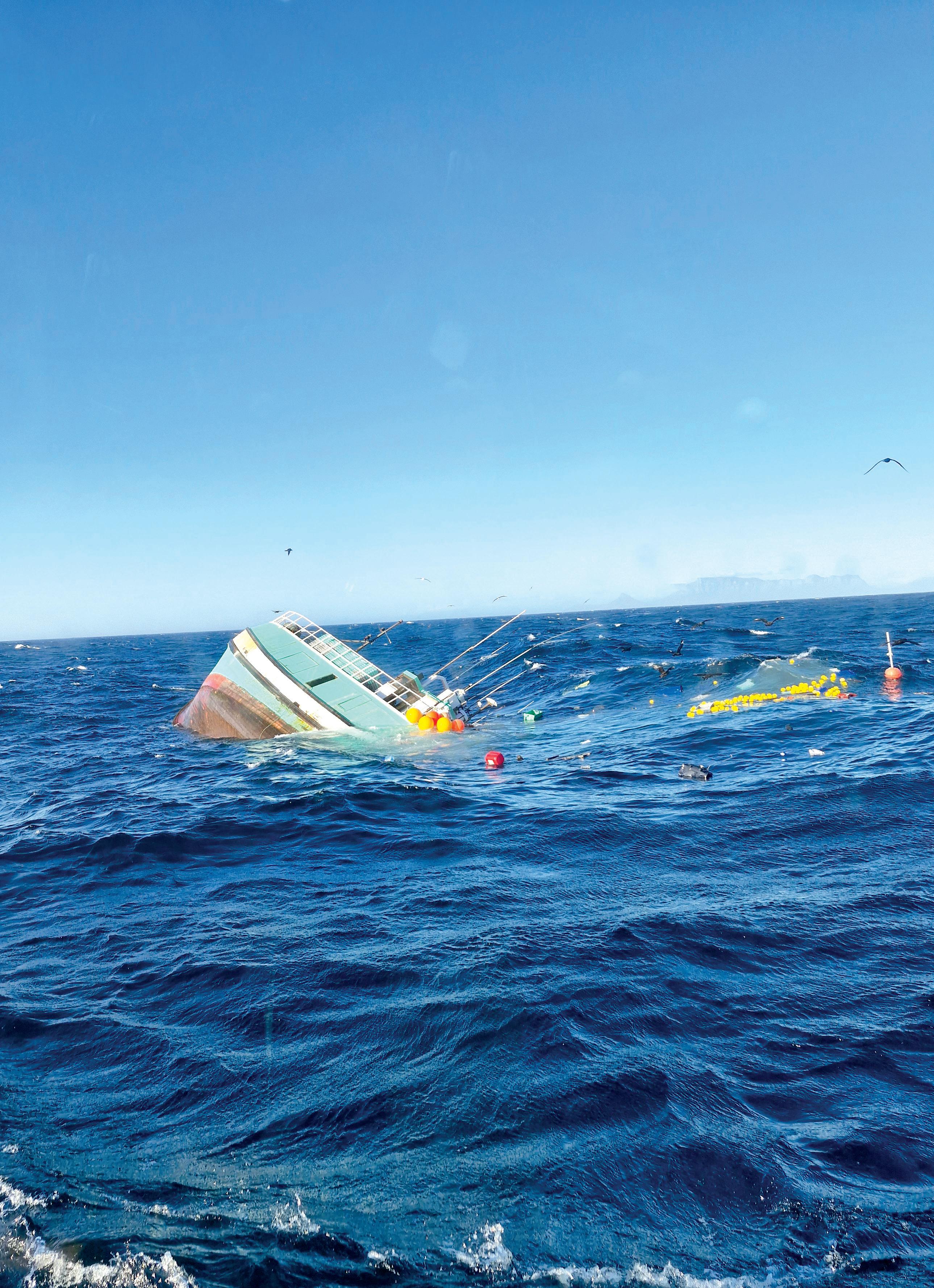 ‘We were running on an east-west course out of Hout Bay. We had to steer clear of Dungeons and Tafelberg Reef on the way out of the bay, as they were running with huge breaking swells, and at about 12 miles off Hout Bay, the swells started to pick up monstrously.