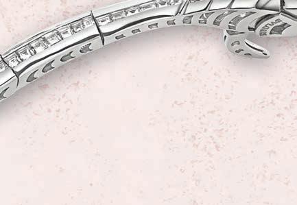 Marking the Maison’s 140th anniversary, Bvlgari’s new Aeterna collection showcases an unprecedent masterpiece, the Serpenti Aeterna necklace. The necklace is said to be the most extraordinary and precious diamond high-jewellery piece ever crafted and displayed by the Roman Maison, requiring more than 2 800 hours to complete. Breaking new ground in jewellery-making, a rough diamond of more than 200 carats was cut to create seven D flawless ultra-clear and pure pear diamond drops totalling 140 carats, one for each year of the brand’s history. The drops are embraced in a sinuous three-dimensional wave structure in platinum, embellished with 698 baguette diamonds weighing 61.81 carats. bulgari.com