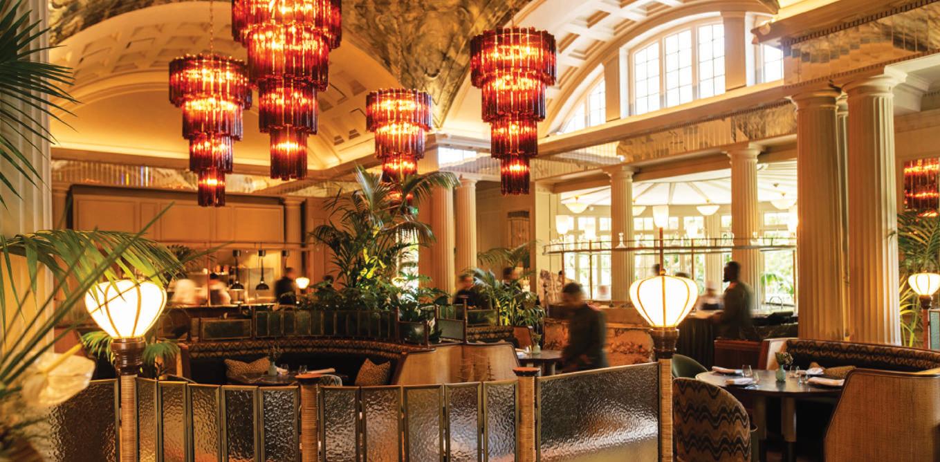 Such treats from our coastline are echoed in local interior architect Tristan du Plessis’s sumptuous interiors. Below kelpinspired chandeliers, marble, glass, leather and rattan combine to create a look that nods to the glory days of ocean liners. belmond.com