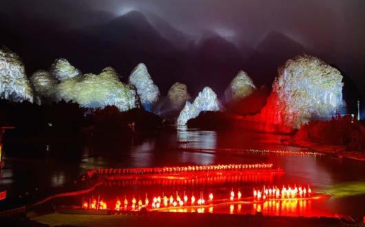 With the magnificent karst scenery of the Li River as the backdrop, Impression Sanjie Liu is a light, music and dance spectacular set on the water and was created by Zhangyimou, director of the opening ceremony of the Beijing Olympics. Featuring folk songs and cultures from along the river, this large-scale performance is in perfect harmony with the incomparable nature around the town of Yangshuo.