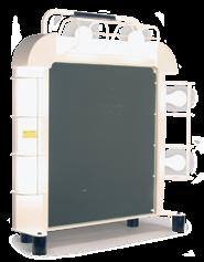 n Cast iron base with wheels for easy transport.
