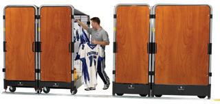 Mobile, high-density athletic equipment storage carts. Customizable, rugged, secure and capable of sharing space with your X-Carts with the ability to roll off the track when needed.