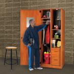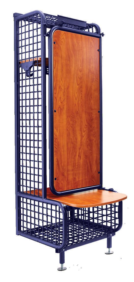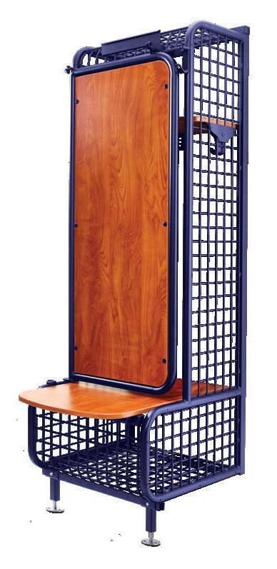 fresh alternative to traditional pressed metal lockers, featuring an open design, integrated seat and custom appearance.
