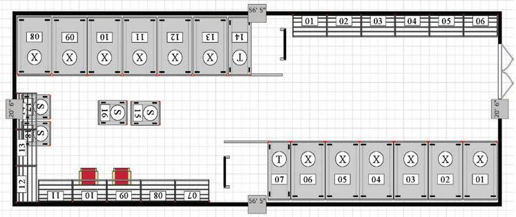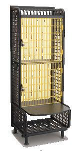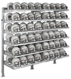 Two 4’ (1219 mm) bays and twelve 301/2” (775 mm) shelves can store over 96 helmets
