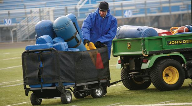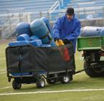 From the facility out to the field or into a truck, it has never been easier to move equipment wherever you go. The TranSport Cart can be pulled by hand or towed with a golf cart or small utility vehicle. It also transforms in seconds to a rock-solid table to serve all kinds of needs at your events.