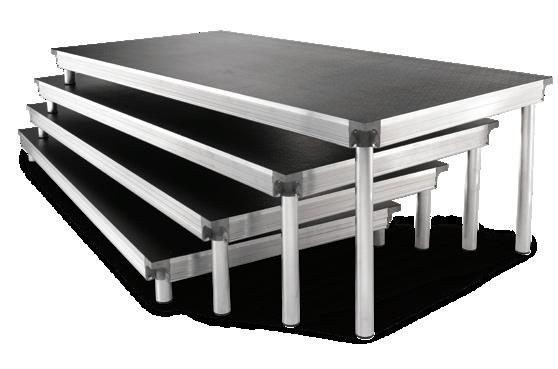 StageTek’s refined, smart design is the result of extensive research, engineering and technical advancements in materials and manufacturing. The result is a staging system that is lighter, stronger, easier to handle and faster to set up. When it comes to stretching your investment across multiple needs, StageTek sets a new standard. Interchanging different sized decks, legs and other components allows you unlimited stage configuration possibilities.