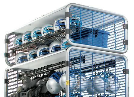 AirPro lockers help create team rooms that stand apart with a durable grid design and color options. The off-the-floor design allows easy cleaning underneath for a sanitary team room. 4 2” GRILLE OPEN DESIGN ALLOWS