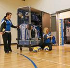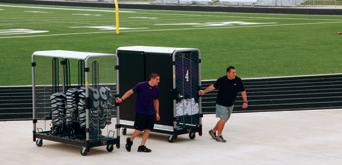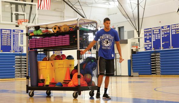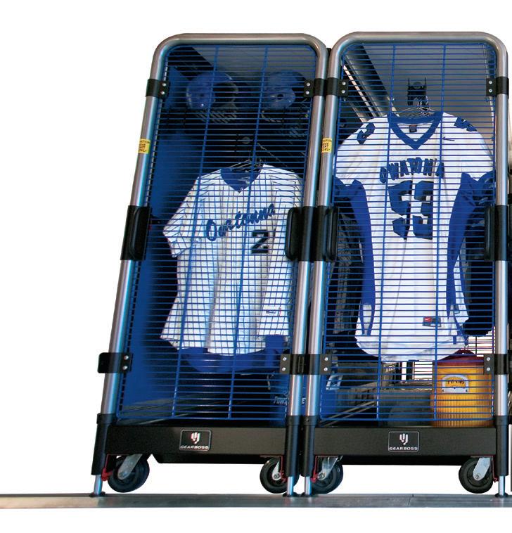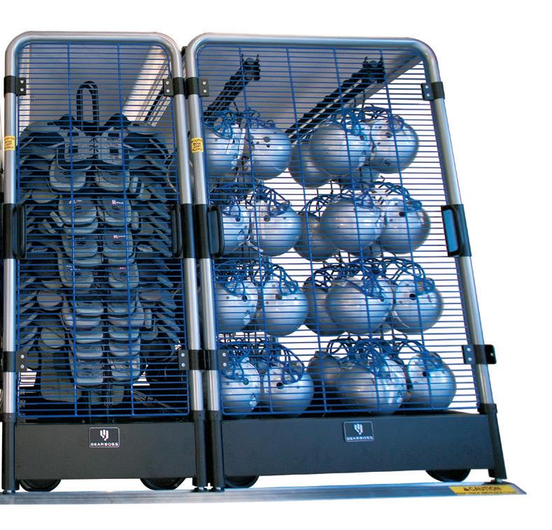 A locking pin can keep GearBoss II carts from rolling – preventing access. Recommended on both ends of tracks. HIGH-DENSITY ATHLETIC STORAGE AT AN