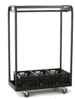 Hangers make it easier to access and move 8 helmets at a time. A 32” (813 mm) X-Cart can hold 56 helmets and a 48” (1219 mm) X-Cart can hold 112 helmets on hangers.