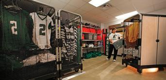“The GearBoss solutions have worked out great –choosing GearBoss was a fantastic decision. Our football equipment room is neat and organized. We also store equipment for other sports in GearBoss carts and GearBoss shelving – across eight rooms. When you look at the GearBoss system, you know right away it’s first-class.”