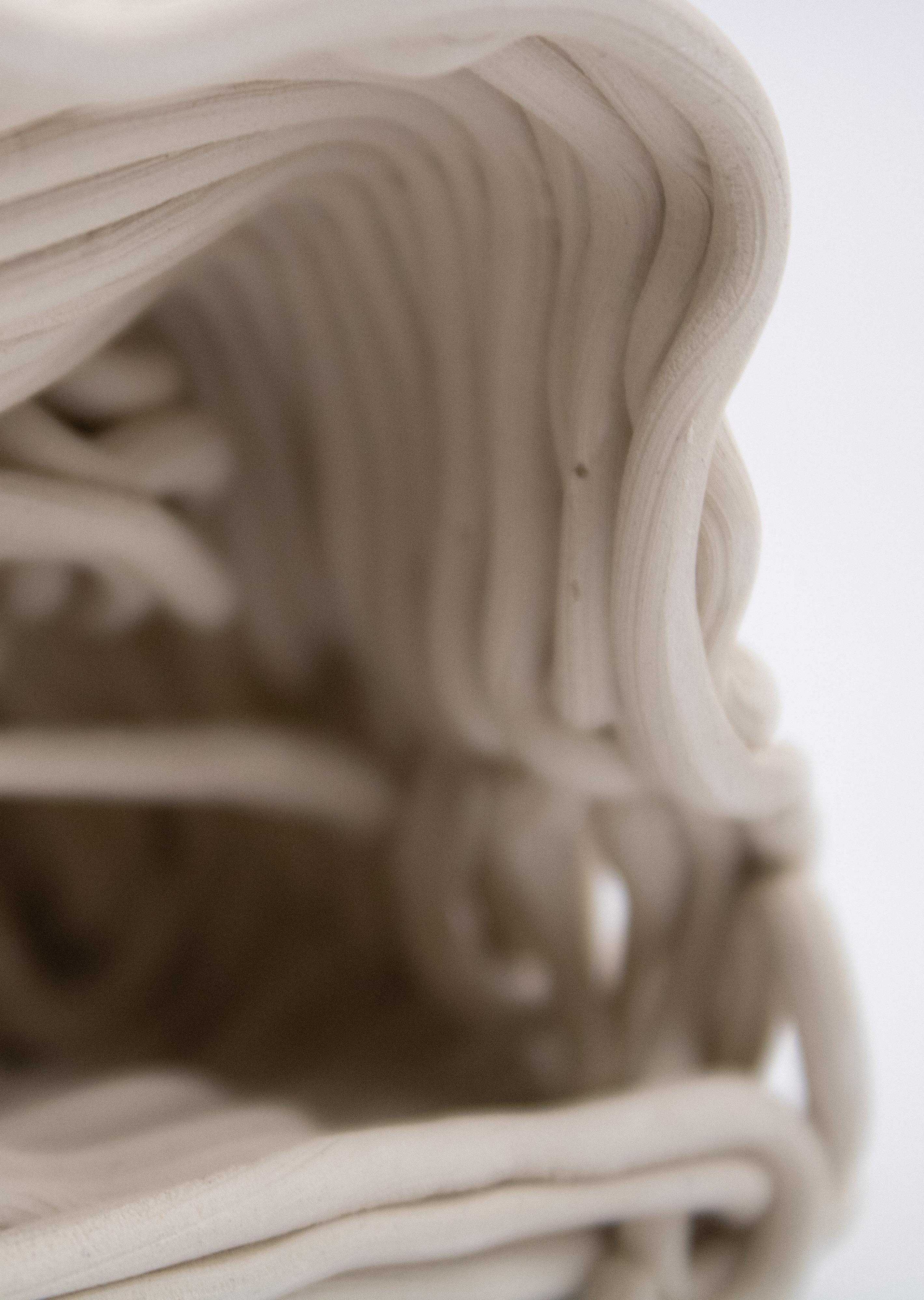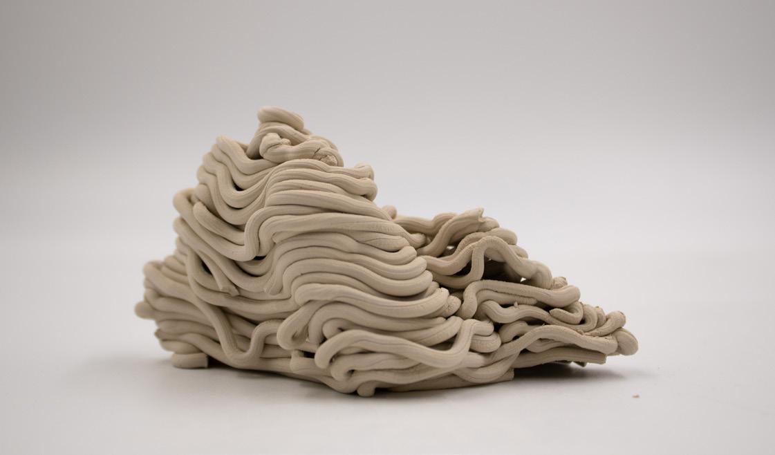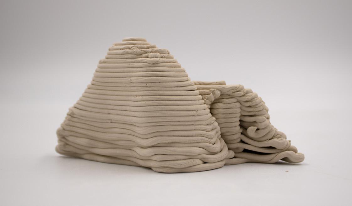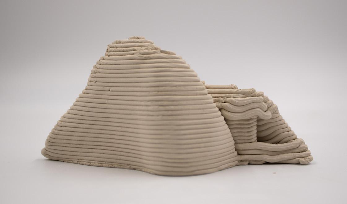 multiple iterations of clay printing to mimic the gravity of 3D printing technology using the material of cement