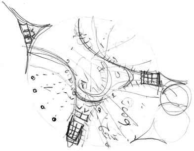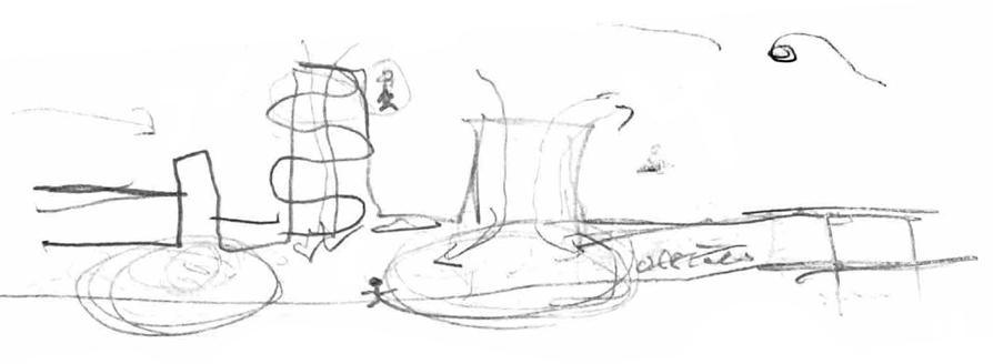 Seven exterior windtowers acting as public observation towers and cooling features for the public the winding paths creates a seamless connection throughout the site and meanders around each exterior wind tower