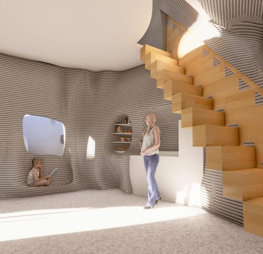 space for each home. The use of 3D printing technology is maximized to design specific elements for the home to allow for the spaciousness