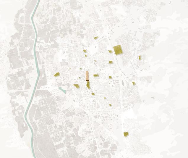 The site is situated at the terminus of downtown Las Cruces with the Las Cruces Farmer’s Market one block north of the site. Our proposal begins with a southern extension of the market towards the school to allow students to participate in the market that occurs every Wednesday and Saturday morning. This initiative provides hands-on business experience for students, fosters community engagement, and ensures access to fresh, organic produce at the market.