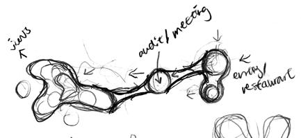 - program- priv anchoring the back where main employee entrance is, middle is classrooms/greenhousesmore educational and also right behind the crops, more social spaces- cafeteria/lib anchoring the front