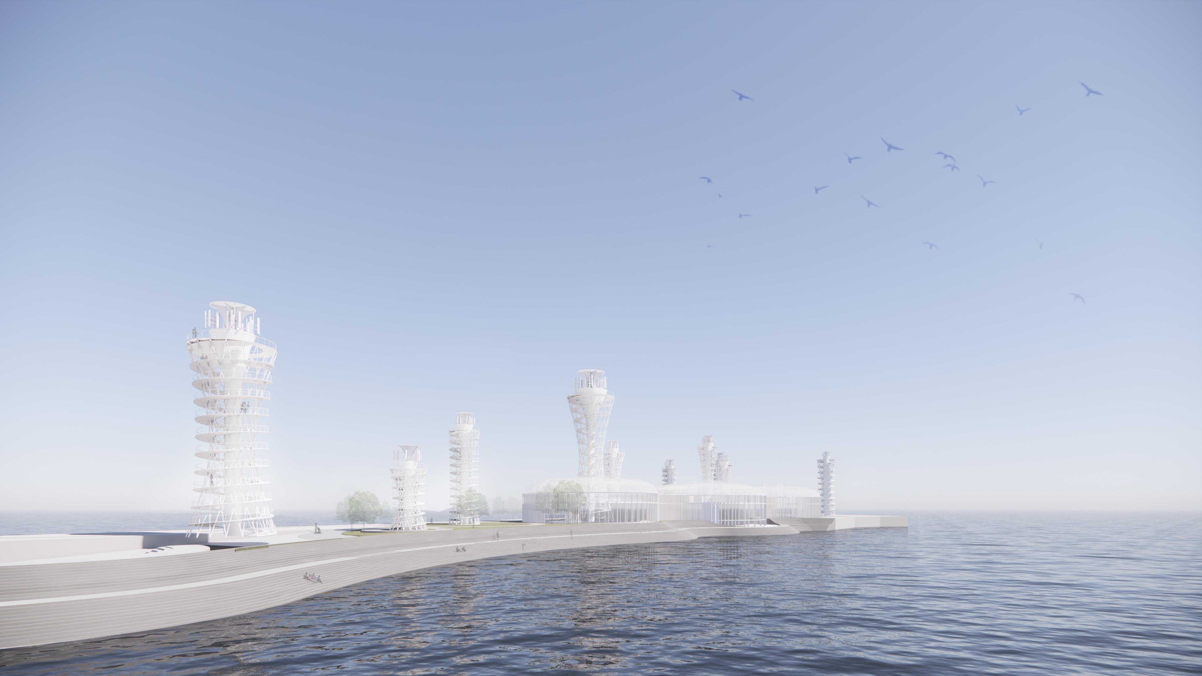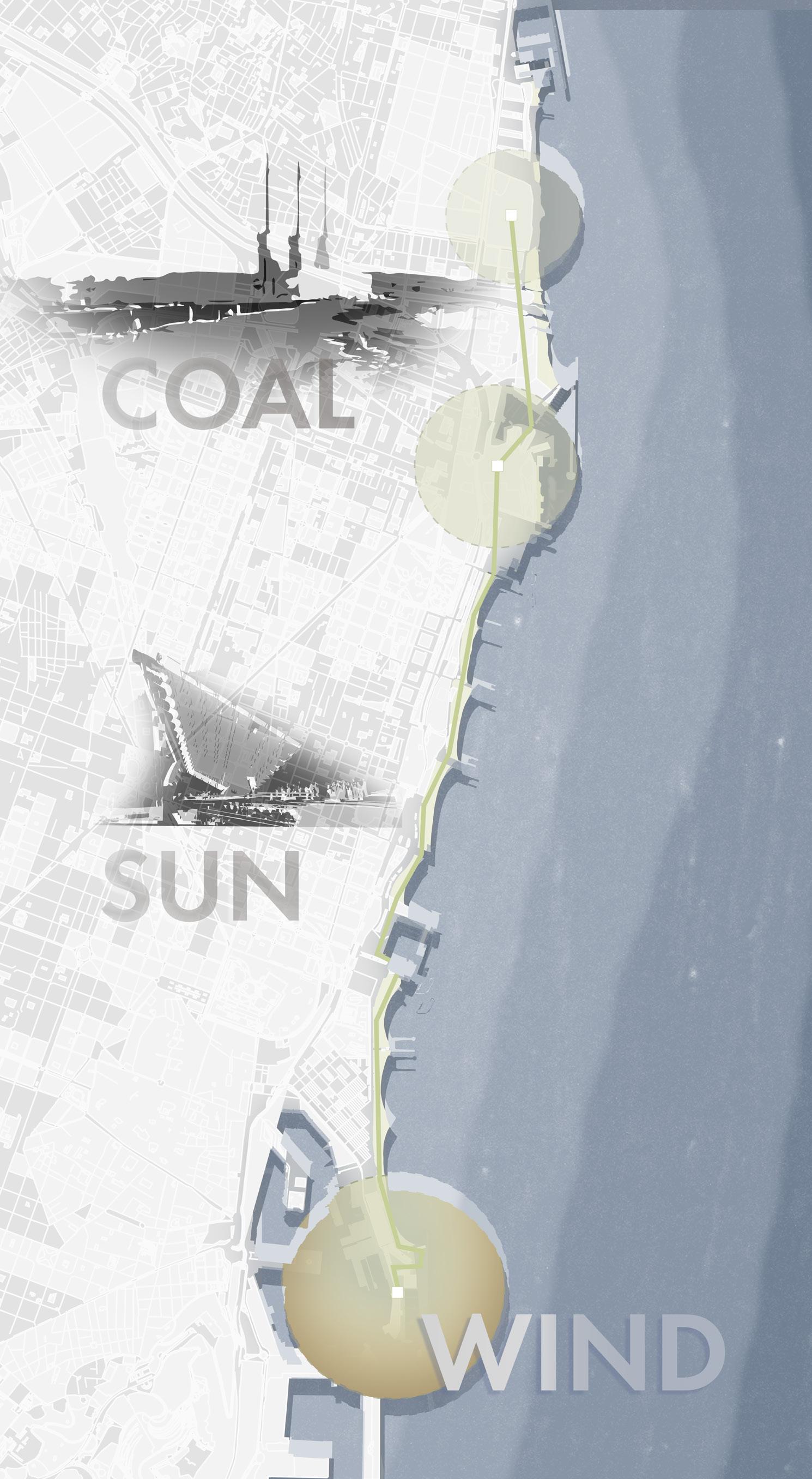 Our project seeks to pay homage to a monumental energy structure of Barcelona’s past: the Tres Xemenies or the Three Chimneys, a former thermal energy plant that once produced the city’s energy. Our site on the coastline presents us with a unique responsibility to help shape the skyline of Barcelona. We challenged ourselves to reinterpret the Tres Xemenies’ conventional chimney form that once heavily contributed to air pollution into a sustainable energy source by analyzing and redesigning different aspects of traditional ancient windcatchers and the chimney form.