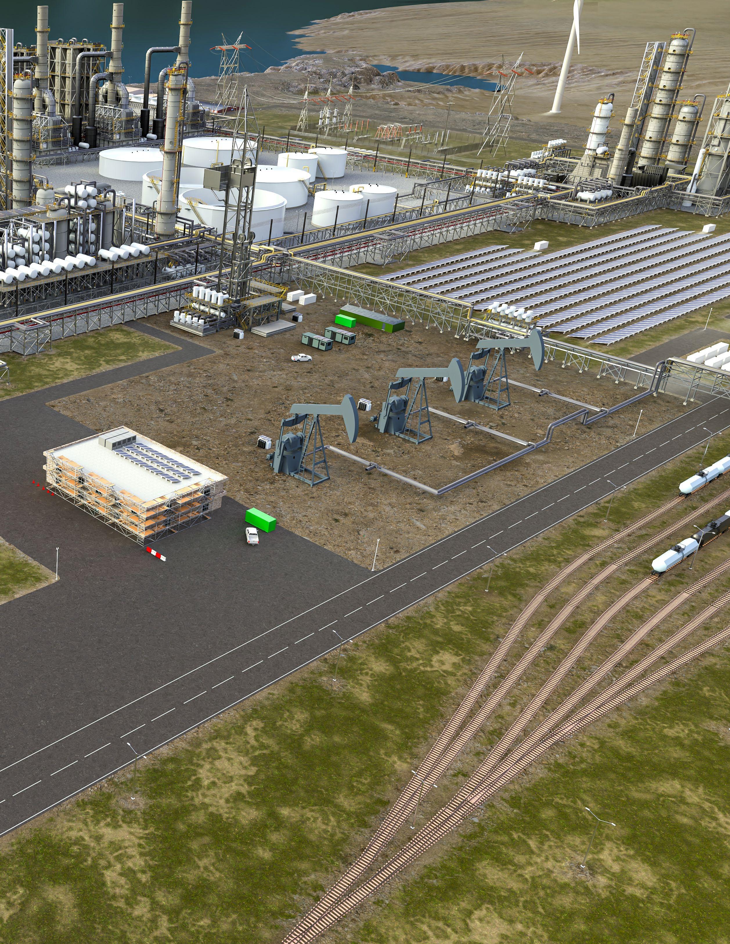 Each industry section (mining, water and wastewater, oil and gas, discrete manufacturing) begins with a 3D facility layout. Numbered callouts link to legends that describe each area or application, helping you understand operational needs. (pages 8–9, 24–25, 42–43, 60–61)