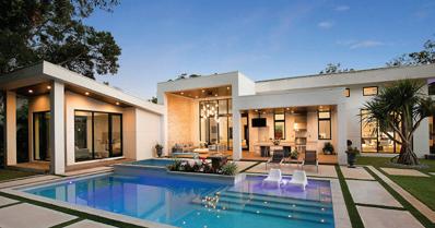 landscape designer Troy Bermel, the wish list came to life: hot tub, fire pit, outdoor kitchen, TV zone, sun deck, and a green lawn for games with the grandkids.