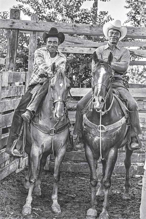 Another of the legends was the great Rufus Green. Known as the Godfather of Black Rodeo, it was my great good fortune to meet him. Green earned the title as much for his majestic spirit and benevolent mentorship of a couple of generations of champion ropers as for his phenomenal roping skills. He followed Dightman to become among the first Black cowboys to cross the color line and earn membership in the PRCA. Like the other true, ranchraised, old-school cowboys I met, Green had a soft-spoken, courtly manner. He was quick to laugh, slow to anger, and as Green’s close friend Monroe Lawson said, “he was incomparable in his disposition.”